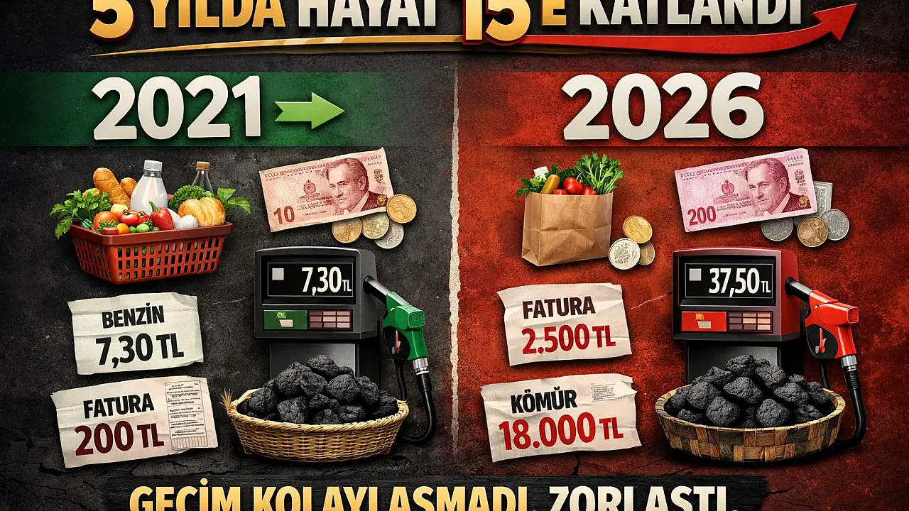 2021'de 1 liraya alınan ekmek 2026'da 15 liraya çıktı. Gıda, ulaşım, fatura ve cezalar katlanarak artarken gelirler aynı hızda yükselmedi. Vatandaş için geçim artık hesap işi değil, hayatta kalma mücadelesine dönüştü.