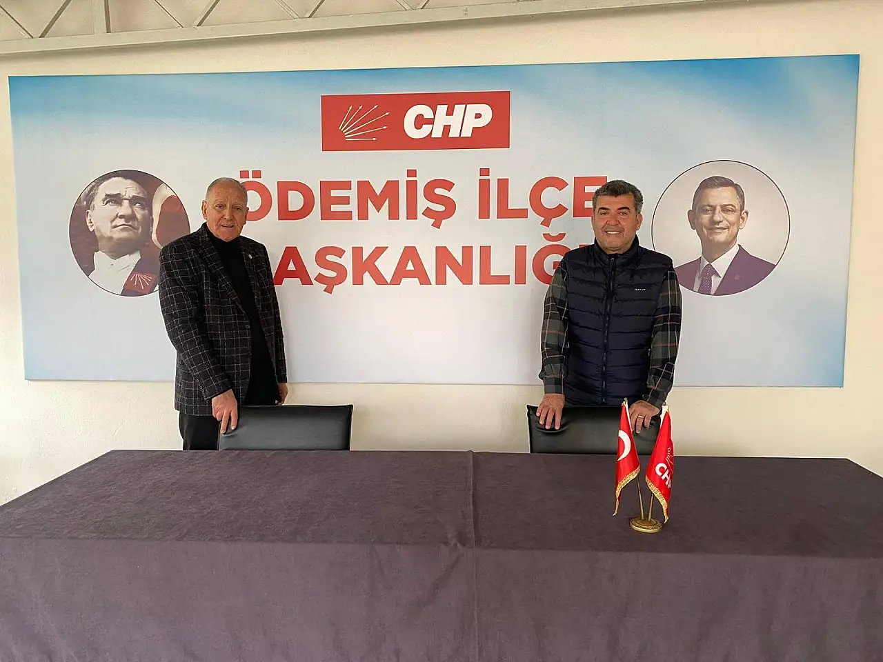 Eski İl Genel Meclisi Üyesi Adnan Saygılıer, CHP Ödemiş İlçe Sekreteri İsmail Türkan'ı ziyaret ederek, yenilenen ilçe binasında yürütülen çalışmaları inceledi ve partililere dayanışma mesajı verdi.