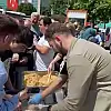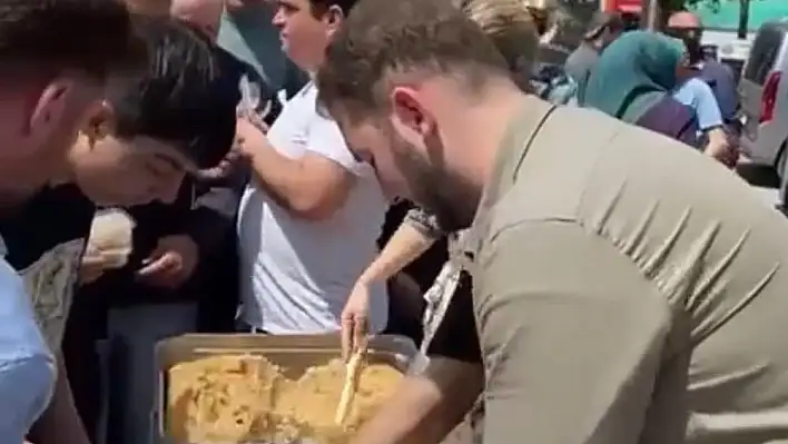Üye standı kuran Ak parti gençlik kolları başkan ve üyeleri, standa üye çalışması yaparken Cumhurbaşkanı Adayı Kemal Kılıçdaroğlu içinde helva dağıttılar