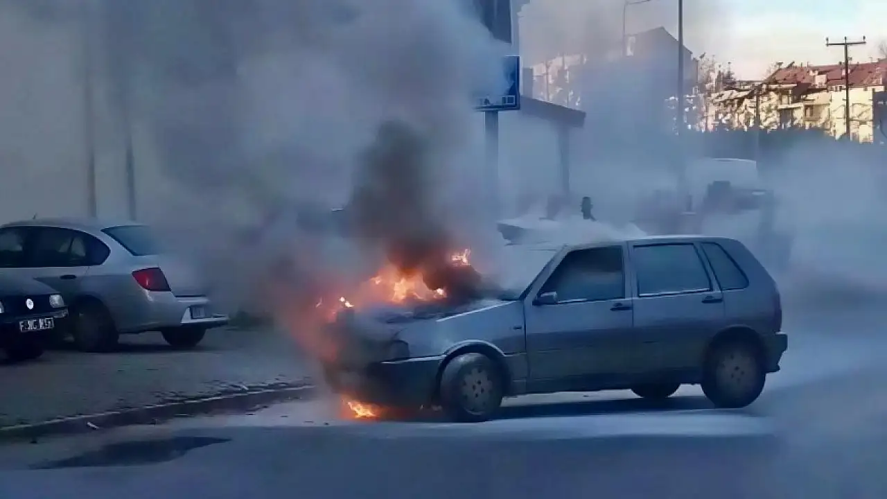 ALEV ALEV YANAN OTOMOBİL KORKU YARATTI