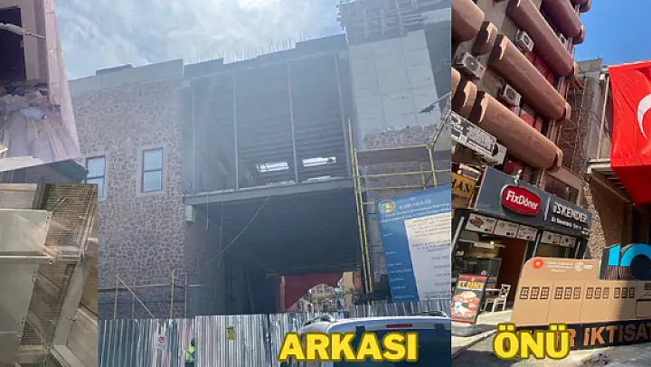 Binanın dış tarafında inşaatta olduğu görünen kısmın Türk bayrağı ile kapatılması dikkat çekti.