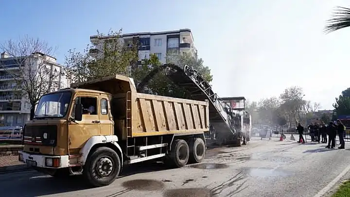 İzmir Büyükşehir Belediyesi'ne bağlı İZBETON ekipleri, Tire Belediyesi Fen İşleri Müdürlüğü iş birliğiyle Adnan Menderes Mahallesi Rafet Saygılı Caddesi üzerinde asfalt yenileme çalışmalarına başladı.