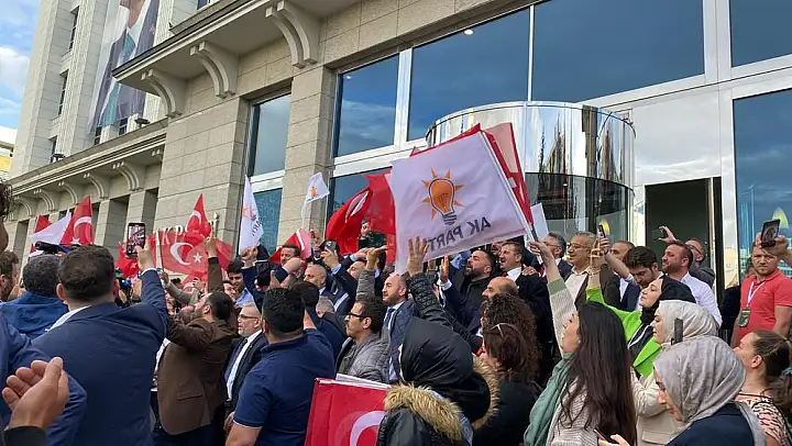 Kesin olmayan sonuçlara göre AK Parti Genel Merkezi'nde bulunan partililer seçim kutlamasına başladı. Tekbir ve sevinç gösterisinde bulunan partililer Cumhurbaşkanlığı Külliyesi'ne yürüdü.