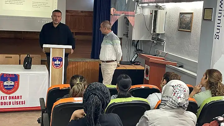 Ülfet Onart Anadolu Lisesi konferans salonunda gerçekleştirilen eğitimde, Destek Hizmetleri Bölümünden Sorumlu Şube Müdürü Serdar Üstüntaş ve Makbule Mehmet Gedikoğlu İlkokulu Müdürü Yasin Türkmen görev aldı.