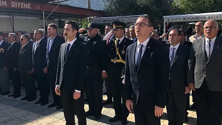İzmir'in Beydağ ilçesinde, 29 Ekim Cumhuriyet Bayramı kutlamaları düzenlenen görkemli çelenk sunma töreniyle başladı.