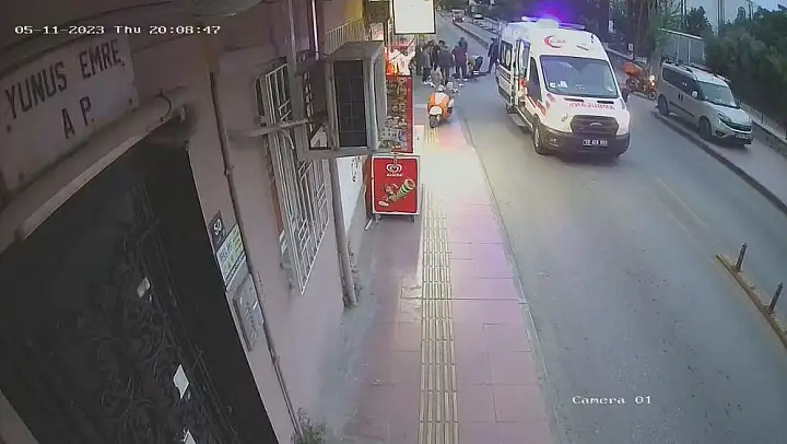 Meydana gelen kaza anbean güvenlik kameralarına yansırken, görüntülerde bir anda önüne fırlayan bisikletli çocuğa çarpmamak için sürücünün motoru devirdiği yer aldı. Kaza sonrasında küçük çocuğun ise korkması kameralara yansıdı. Kazadan sonra bisikleti ile arkasına baka baka olay yerinden uzaklaşan çocuğun bir müddet sonra vicdan yapıp, yaralanmasına neden olduğu motosikletli gencin başına geldiği görüldü.