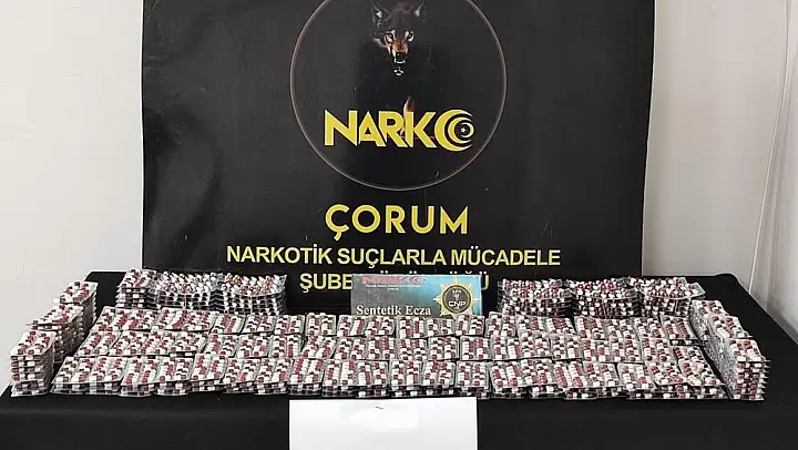 İl merkezinde uyuşturucu madde satışının önlenmesine yönelik yapılan operasyonda, Narkotik timler İstanbul'dan Çorum'a uyuşturucu madde getireceğini öğrenen şüpheli kişiyi Çorum Şehirlerarası otobüs terminalinde yakalandı. Şüphelinin üstünde ve bavulunda 4 bin 406 adet ecza maddesi ele geçirildi.Emniyet müdürlüğünde yapılan işlemlerin ardından adliyeye sevk edilen zanlı; uyuşturucu madde ticareti yapmak suçundan çıkarıldığı mahkeme tarafından tutuklanarak Çorum L tipi kapalı cezaevine gönderildi bilgisi verildi.