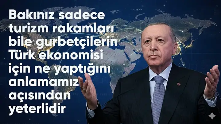 Erdoğan ayrıca, Türkiye'ye gelen 62,1 milyon ziyaretçinin 9,6 milyonunun yurt dışında yaşayan Türk vatandaşları olduğunu ifade etti. Bu rakamlara ihracat, yatırım, istihdam ve diğer ekonomik katkıların dahil olmadığını da özellikle vurguladı.