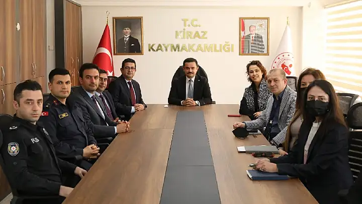 Yapılan nezaket ziyaretinden dolayı Kiraz İlçe Kaymakamı Onur Titiz, gelen konuklara teşekkür etti. Yapılan ziyarette Kiraz Kaymakamı Onur Titiz, Kiraz İlçe Jandarma Komutanı Yusuf Murat Döner Kiraz İlçe Emniyet Müdürü Ahmet Serkan Erdem'de bulundu.