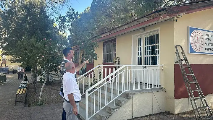 Bayındır İlçe Milli Eğitim Müdürü Serdar ÖKAY, Ergenli Şehit Cevdet Aygün Ortaokulu'nu ziyaret ederek devam eden onarım çalışmalarını yerinde inceledi.