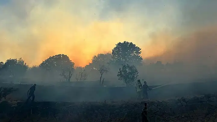 İzmir'in Dikili ilçesinde gece saatlerinde bir sitede başlayan yangın, çevredeki makilik alana yayılınca ekipler alarma geçti. Çandarlı Mahallesi'nde bulunan Bimeyko Sitesi'nde çıkan yangın, hızlı müdahaleyle büyük ölçüde kontrol altına alınmaya çalışılıyor.