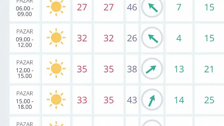 Meteoroloji Genel Müdürlüğü'nden alınan son dakika hava durumuna göre İzmir'de bugün sıcak ve güneşli bir gün olacak .En yüksek sıcaklık 35 derece olacak.