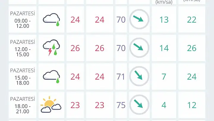 Meteoroloji Genel Müdürlüğü tarafından yapılan son değerlendirmelere göre İzmir genelinin parçalı ve çok bulutlu, aralıklı ve yerel sağanak ve gök gürültülü sağanak yağışlı geçeceği tahmin ediliyor.