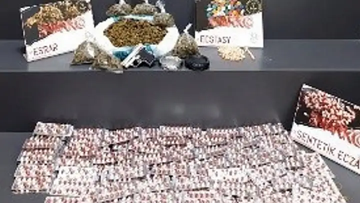 Operasyonlar çerçevesinde adreslerde yapılan aramalarda, 11 kilo 696 gram esrar-skank, 2 kilo 760 gram metamfetamin, 74 gram kokain, 642 adet ecstasy, 2 bin 48 adet captagon, 7 bin 372 adet sentetik ecza, çeşitli uyuşturucu türlerinden satışa hazır hale getirilmiş vaziyette bir miktar uyuşturucu madde, 8 hassas terazi, 24 tabanca, 5 tüfek, 112 tabanca/tüfek fişeği ve suçtan elden edilen 69 bin 140 Türk Lirası ele geçirildi.
