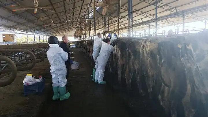 Kiraz İlçe Tarım ve Orman Müdürlüğü, hastalıktan ari işletmelerde veteriner hekimler tarafından rutin kontroller kapsamında kan numunesi alımı gerçekleştirdi.
