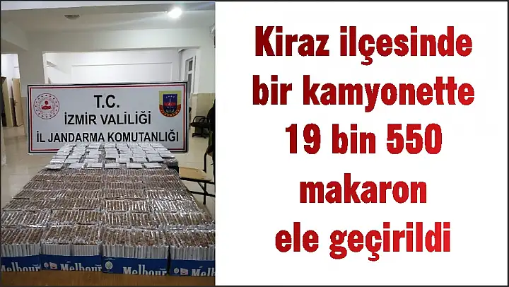Kiraz ilçesinde şüphe üzerine durdurulan kamyonette yapılan aramada 19 bin 550 içi dolu makaron bulundu.