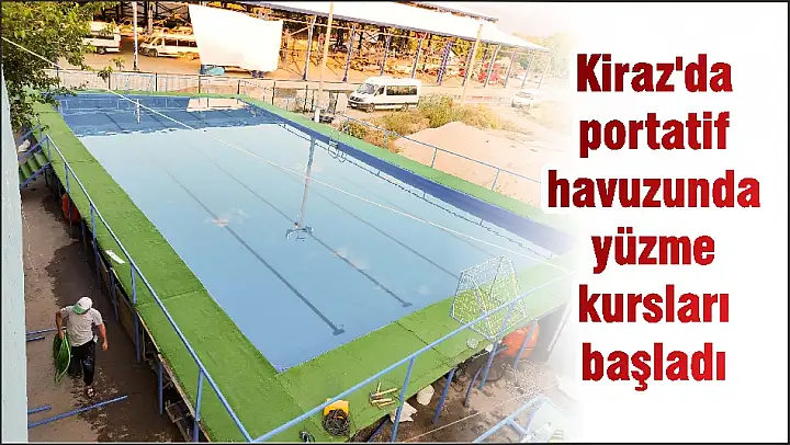 İzmir Büyükşehir Belediyesi tarafından İzmir'in çeşitli ilçelerine kazandırılan portatif yüzme havuzu Kiraz'da devreye girerken yüzme kursları kayıtları başladı.