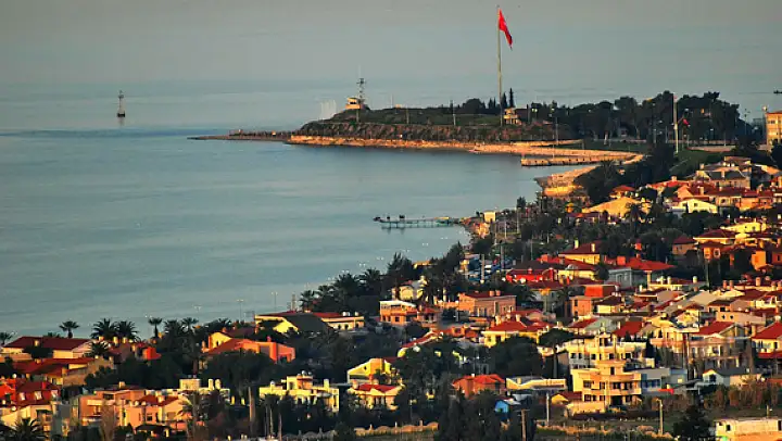 İzmir'in doğal güzellikleri ve tarihi mirasından bolca barındıran Narlıdere sahil şeridi mas mavi ege denizini seyrediyor.