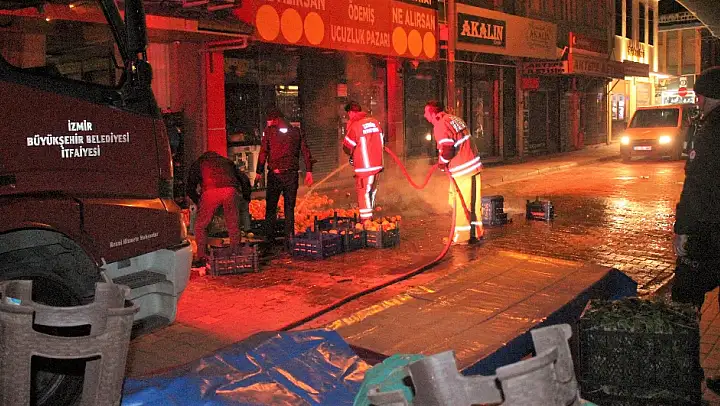 Ödemiş Akıncılar Mahallesi Hürriyet Caddesi NO: 8'deki işyeri önündeki pazar yeri tezgahında, yangın meydana geldi. Çıkan...