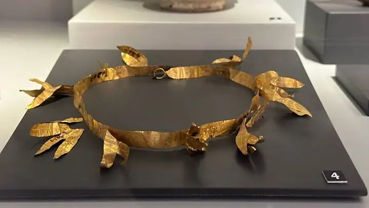 Geçimini Roma döneminde zeytincilikle sağlayan eski adıyla Nicaea'da vali olan varlıklı bir kişiye ait olan altın taç, zeytin yapraklarından esinlendi.
