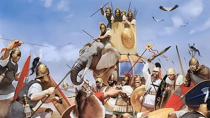MÖ 280 ve MÖ 279 yıllarında Grek kolonisi Tarentum Kralı Pirus Roma'ya saldırır ve ne pahasına olursa olsun savaşı kazanmak için her şeyini feda eder. Sonunda Pirus, savaşı kazanır; ancak 50 filin desteklediği ordusunun tamamını kaybeder.