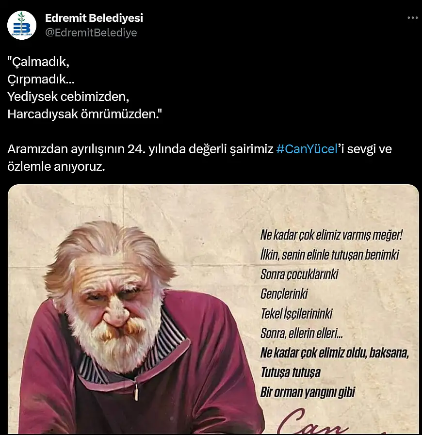 Şairlerin ve yazarların kaleminden çıkmamış ve başkalarının uydurduğu iddiaları son zamanlarda artmasıyla tepkiler de beraberinde geliyor. Bir şiir paylaşımı da Edremit Belediyesi’nden geldi.