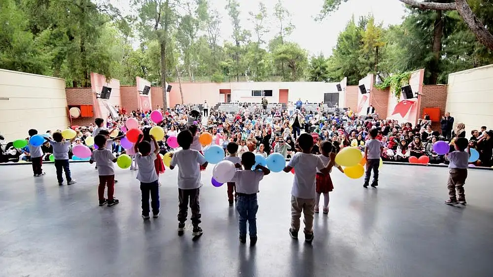 Bornova Belediyesi’nin Altındağ, Evka 3, Mevlana, Naldöken, Pınarbaşı, Serintepe, Atatürk Mahallesi ve Doğanlar’da iki nokta olmak üzere açtığı toplam 9 Çocuk Oyun Aktivite Merkezi’nden yararlanan minikler 23 Nisan’a özel olarak düzenlenen programla Bornovalılar’ın karşısına çıktı. Bornova Belediyesi Ayfer Feray Açıkhava Tiyatrosu’nda her merkezin ayrı gruplar halinde birer gösteri ile sahne aldığı etkinlik, ailelere duygu dolu anlar yaşattı. Çoğu ilk kez sahneye çıkan 3-6 yaş arası 500 çocuk performanslarıyla büyük alkış aldı. Etkinliğin bitiminde tüm çocuklar sahnede hatıra fotoğrafı çektirip İzmir Marşı’nı coşkuyla söyledi.