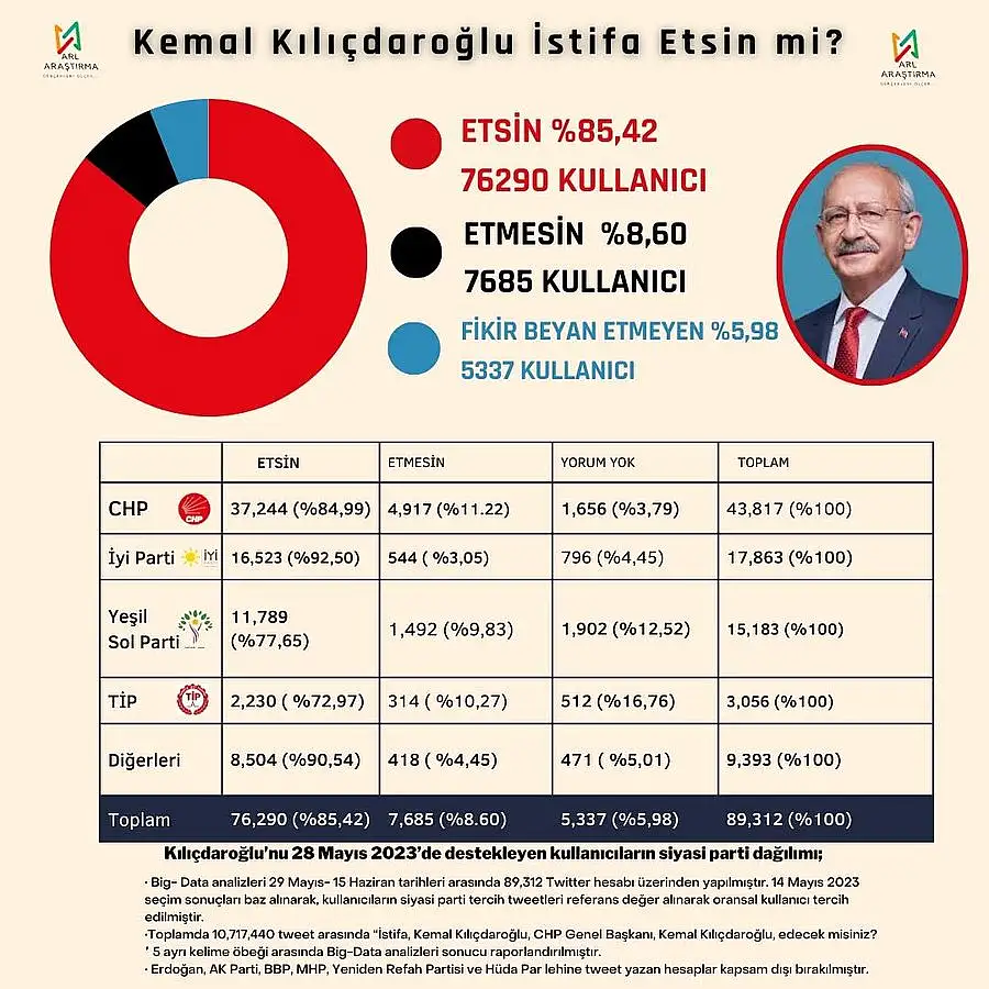 ARL Araştırma şirketinin dökümanlarında ‘Kemal Kılıçdaroğlu istifa etsin mi?’ sorunun cevapları arasında çarpıcı detaylara ulaşıldı.