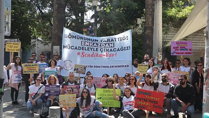 Özel Sektör Öğretmenleri Sendikası İzmir İl Temsilcisi Tülay Apak, “Son 20 yılda özel sektör öğretmenleri artmaya başladı. Bunun da ana kaynağı eğitimin kamudan çıkarılarak, paralı eğitime evrilmesidir. 2014 yılında taban maaşın kalkmasıyla sömürü düzeni arttı, kurs merkezleri, anaokulları, rehabilitasyon merkezleri, kolejler eğitim kurumu olmanın dışında ticarethaneye dönüştü. Eğitim kökenli olmayan, eğitimden hiç anlamayan kişiler eğitim kurumları açtı. Bunlar ağırlıklı tekstil ve inşaat gibi farklı sektörlerden gelerek öğrenciyi müşteri gibi gören bir zihniyet oluşturdular. Ticarileşen eğitimle emek sömürüsü de peşinden geldi. 2014 yılında taban maaş uygulaması kaldırıldı. Özel sektör öğretmeni, kamuda çalışan bir öğretmenin aldığı en az maaş kadar bir maaş alıyorken, artık asgari ücret seviyesindeki maaşlara çalışıyor. Kamuda çalışan birisi kadar maaş veren kurum sayısı İzmir’de bir elin 3 parmağı geçmez” dedi.