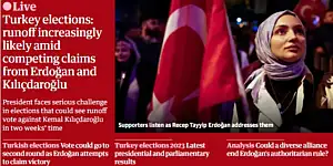 Seçimler, The Guardian’da canlı güncellemelerle takip edildi. Seçmenlerin yüksek katılımına değinildi ve Erdoğan’ın balkon konuşmasındaki “Açık ara lideriz” sözlerine yer verildi. Financial Times “Erdoğan ve Kılıçdaroğlu Cumhurbaşkanlığı için kıyasıya yarıştı” başlığını yazdı.