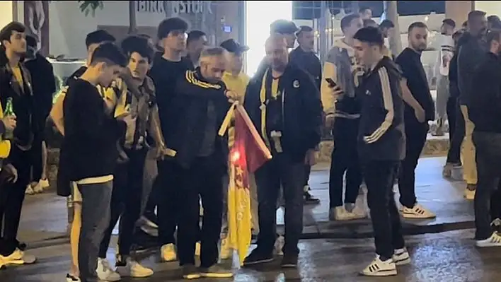 Sarı-lacivertli taraftarlar araçlardan aldıkları Galatasaray bayraklarını yaktı.