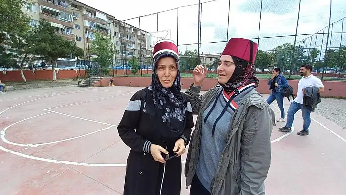 Edirne’de seçmen olan iki arkadaş sandık başına başlarında fes giyerek oy kullandılar.