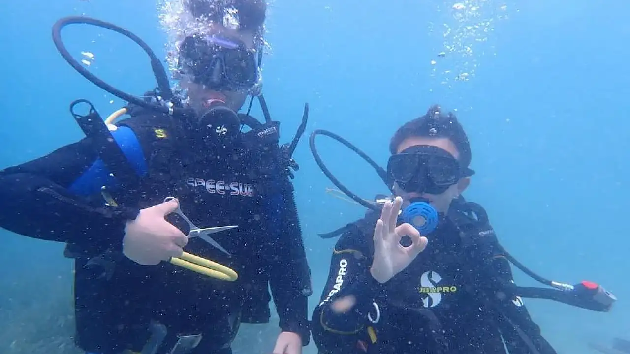 Manisa’da çocuk yaşlarda kuaförlüğe başlayan Emirhan Güngör (17), mesleğinde daha iyi yerlere gelebilmek için maharetini farklı yönlerde de kullanmaya başladı. Denizin altında tıraş yapmak için harekete geçen genç kuaför, İzmir’in Karaburun ilçesine gelerek dalgıç kıyafetini giyip yaklaşık 5 metre derinliğe daldı.
