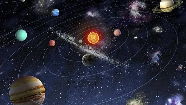 Güneş Sistemi, Güneş’in etrafında dönen gezegenler, cüce gezegenler, asteroitler, meteorlar, komitler, gaz ve toz bulutları, ve...