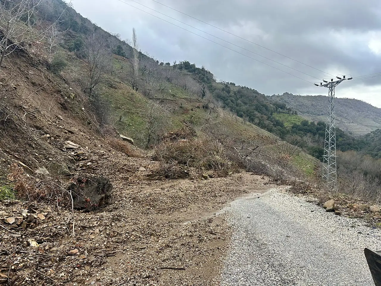 Sabahın erken saatlerinde Tire ilçe merkezine gitmek üzere yola çıkan mahalle sakinleri ve öğrenci servisleri, kaya parçaları ve toprak yığınıyla karşılaşınca mağdur