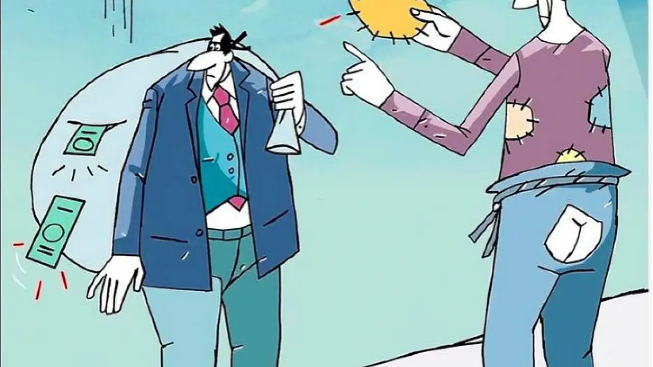 Yazar Akın, “Tevfik Fikret'in 'Han-ı Yağma' şiirini anımsıyor insan, Hicabi Demirci'nin karikatürünü görünce” diyerek paylaştığı karikatürün...