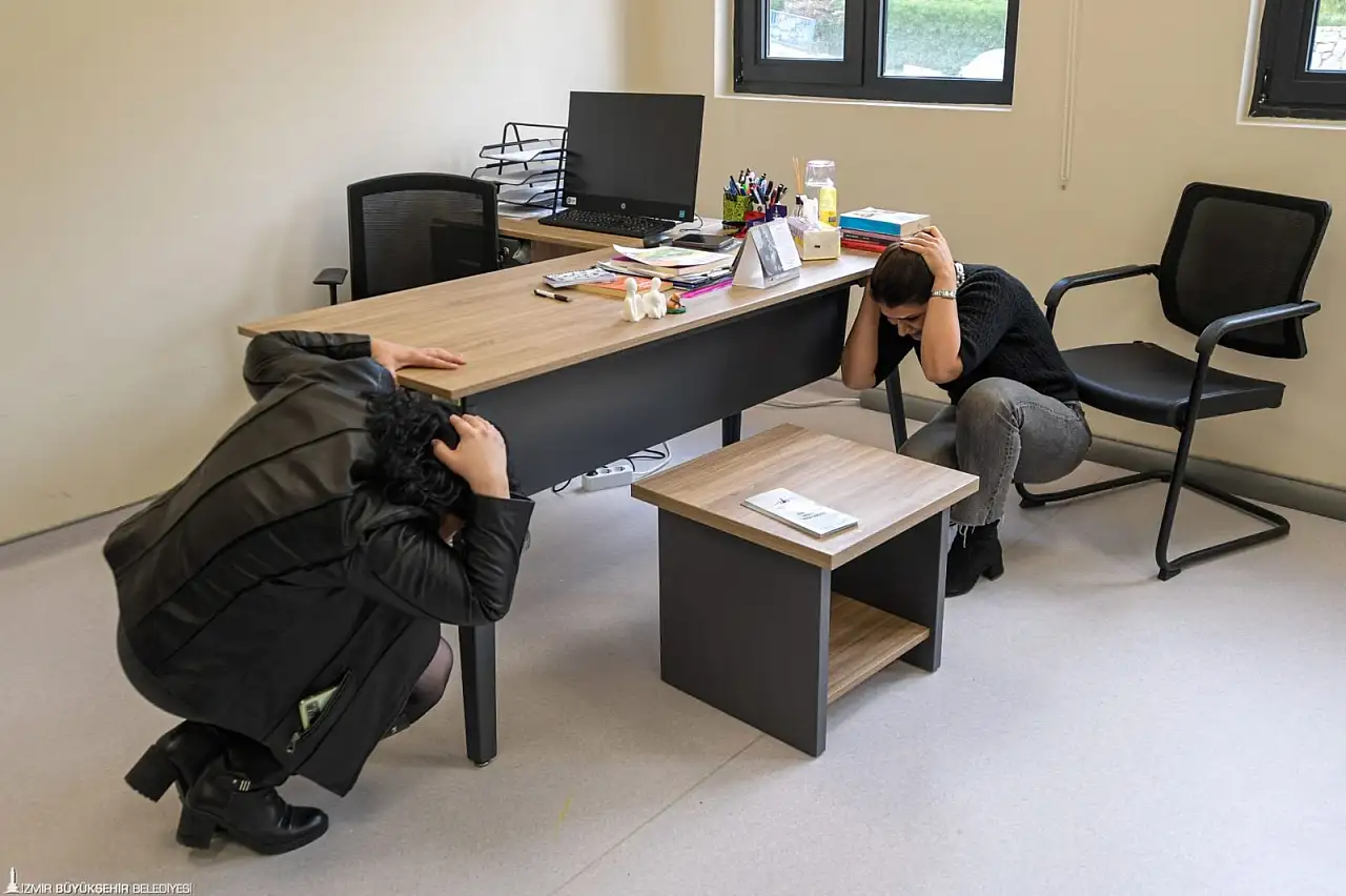 İzmir Büyükşehir Belediyesi, Karabağlar'daki Yurdoğlu Engelli Hizmet Merkezi'nde engelli bireylerin afet anında güvenli tahliyesini test etmek amacıyla kapsamlı bir tatbikat düzenledi.