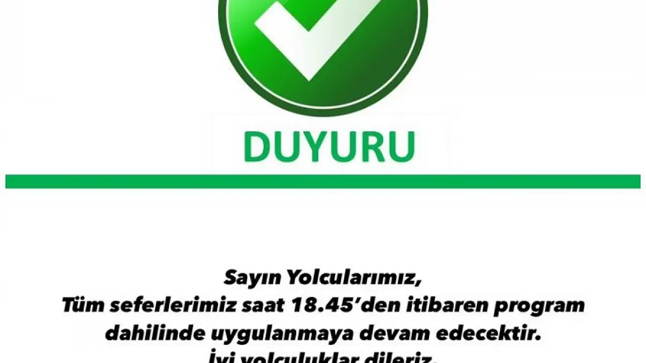 İZDENİZ tarafından yapılan açıklamada, “Tüm seferlerimiz saat 18.45’den itibaren program dahilinde uygulanmaya devam edecektir. İyi yolculuklar dileriz” ifadelerine yer verildi.
