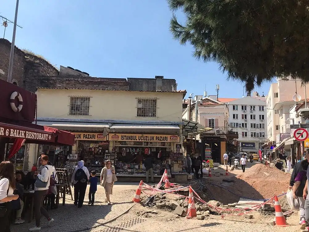 Yeni İzmir Gazetesi’nden Pelin Yeşil’in haberine göre, Kemeraltı Kızlarağası Hanı önünde büyükşehir tarafından yapılan çalışmaların yavaş ilerlemesi çevre esnafını isyan ettirdi.