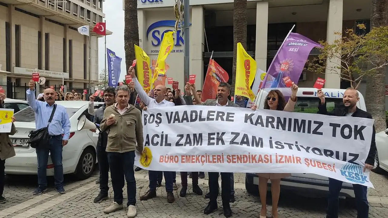 Özer, “2022-2023 Toplu Sözleşmesini yandaş Sendika ile imzalayan Çalışma Bakanı Vedat Bilgin o tarihte Cumhuriyet tarihinin en iyi Toplu Sözleşmesi demişti, ne oldu memurlar 2 yıl içerisinde tarihin en büyük yoksullaşmasını yaşadı. Sahte enflasyon rakamları ile en çok yoksullaşan kamu emekçileri oldu. Bugün ise aynı bakan Temmuz Ayında 1. Derece memurlara 3600 Ek gösterge vaat etmektedir. Dün söyledikleri bugün yalan olanların yarın için söyledikleri vaatlere neden inanalım. Vaatlere karnımız tok, hakkımız olanı istiyoruz. Onu da hemen istiyoruz” diye konuştu.