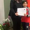 Ödül töreninde Milhan Emir, okul müdürü Hanefi Soylu ve Tire İlçe Milli Eğitim Müdürü Duygu Çevirgen Uzun’un katılımıyla başarı belgesini aldı.