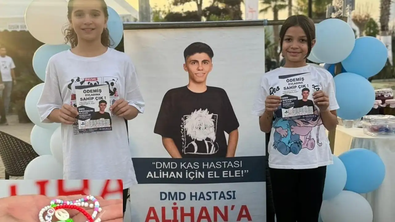 11 yaşındaki Naz Selvi ile 9 yaşındaki Kumsal Emre, aylarca kendi elleriyle yaptıkları bileklikleri satarak elde ettikleri geliri, Duchenne Musküler Distrofi (DMD) hastalığıyla mücadele eden Alihan’ın tedavi sürecine destek olmak için bağışladı.