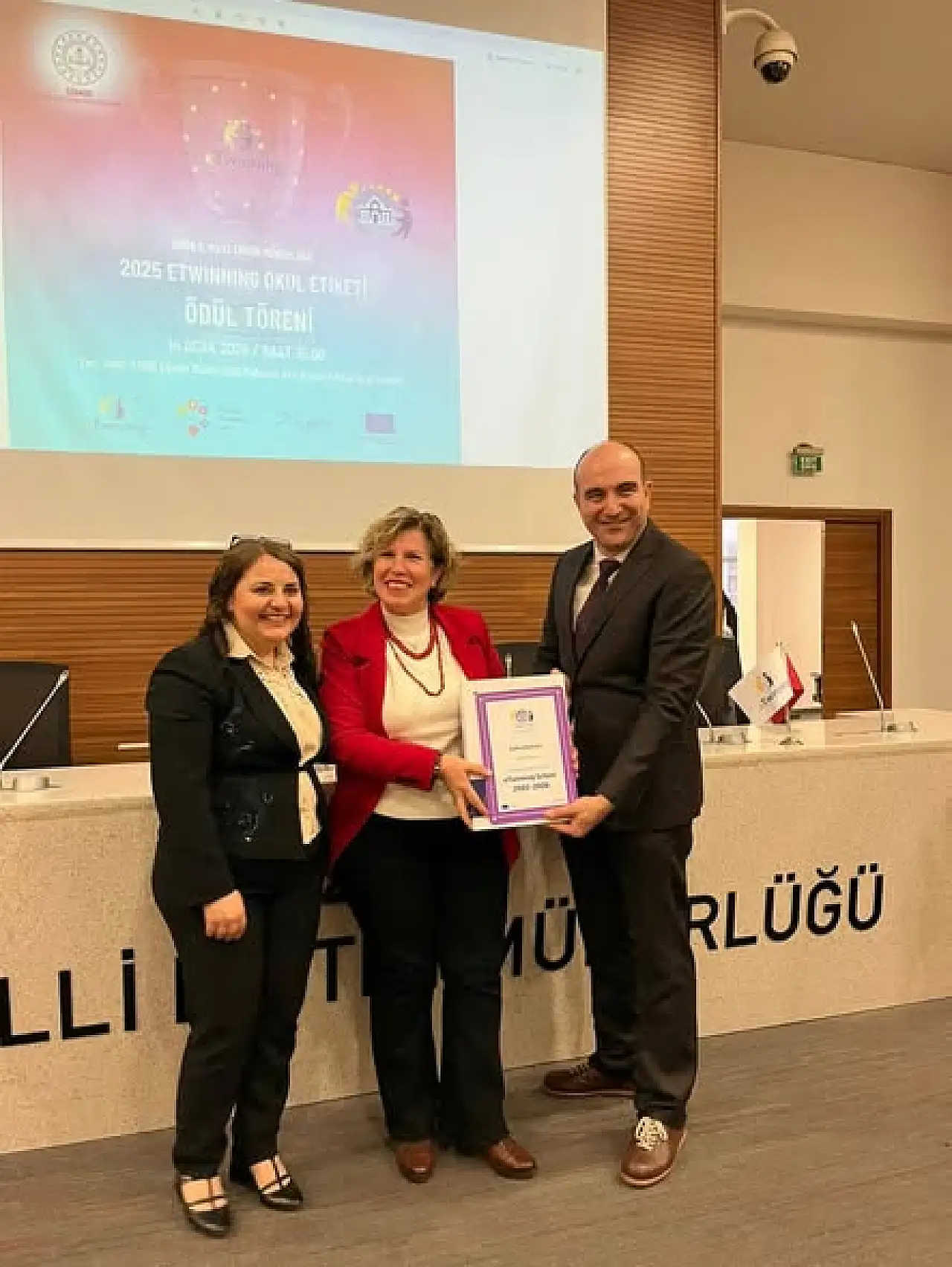 Söz konusu okullar, İzmir’de düzenlenen eTwinning School Belge Töreni’nde belgelerini teslim aldı. Avrupa çapında yürütülen eTwinning projeleri kapsamında verilen bu belge; okul yönetimi, öğretmenler ve öğrencilerin iş birliği içinde yürüttüğü nitelikli çalışmaları belgeliyor.