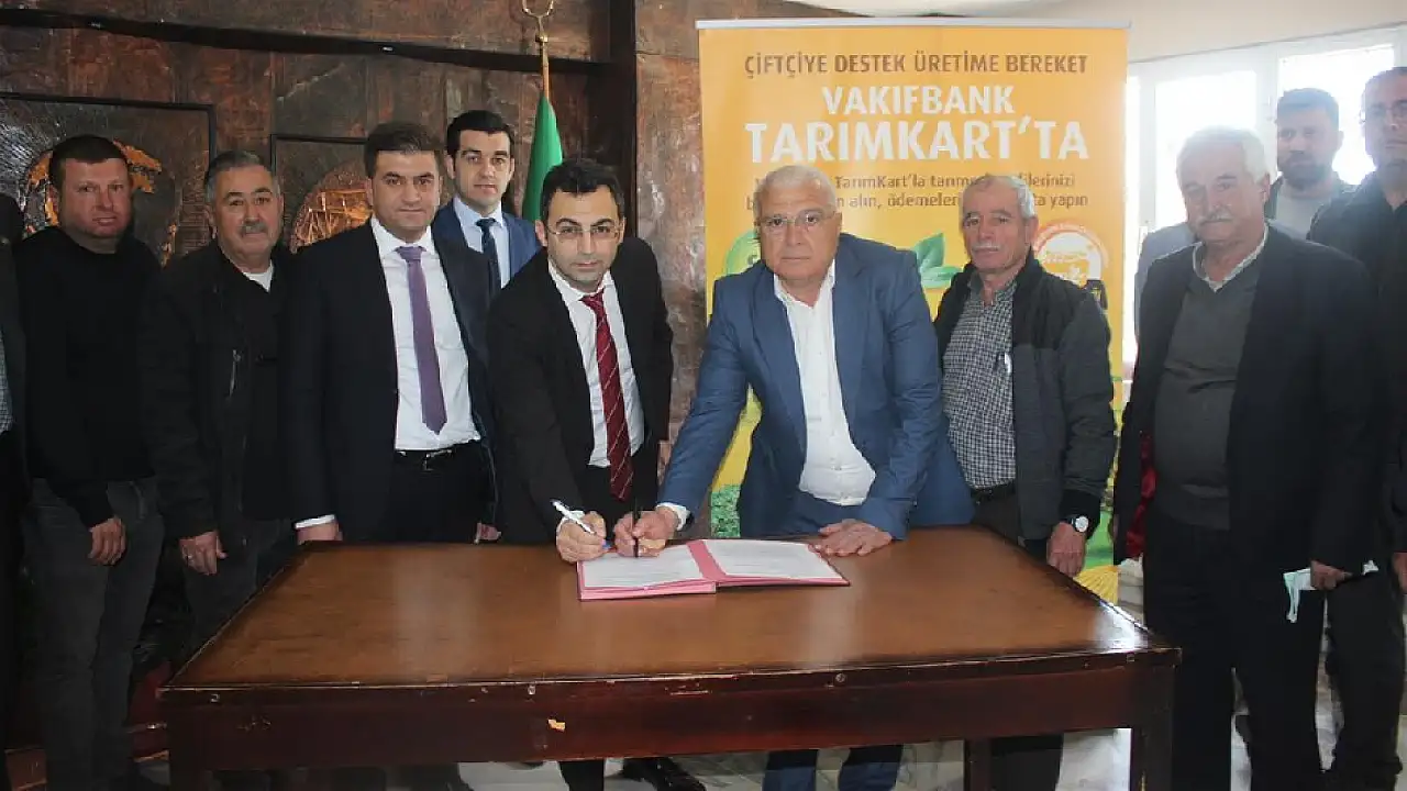 İndirimli kredi imza protokolüne Vakıfbank Ödemiş Şube Müdürü Hakan İlkar, Ödemiş Ziraat Odası Başkanı Ahmet Kocaağa, Vakıfbank Tarım Portföyler Sercan Cavlak, Yunus Büyükkutlu ve Ödemiş Ziraat Odasının yönetim kurulu üyeleri katıldılar.