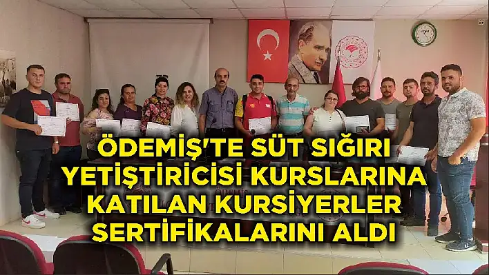 - ÖDEMİŞ'TE SÜT SIĞIRI YETİŞTİRİCİSİ KURSLARINA KATILAN KURSİYERLER SERTİFİKALARINI ALDI