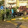 Ağaçlar, belediyeye ait iş makineleriyle kaldırıldı.