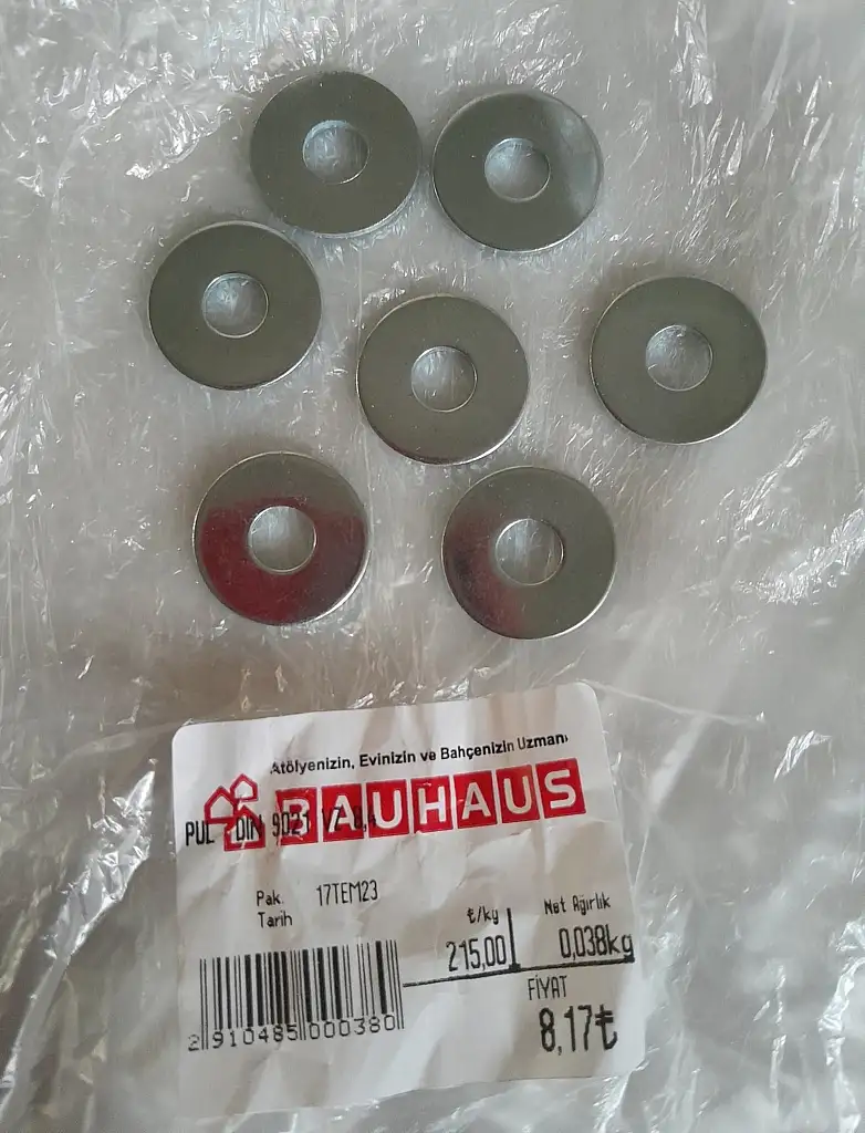 Sosyal medyada cıvata puluna 8 lira 17 kuruş ödediği için isyan eden bir sosyal medya kullanıcısı, “Matkapla delip elli kuruş kullansam yarı fiyatından bile aza, 3,5 TL’ye geliyor. Bir daha buna para verirsem Allah belamı versin” dedi.