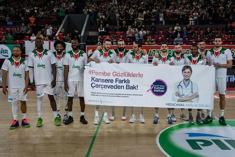 Pınar Karşıyakalı basketbolcular, 1-7 Nisan tarihleri arasında ‘Kanser Farkındalık Haftasına karşı farkındalık oluşturmak için anlamlı bir harekete imza attı. Karşılaşma öncesi sahaya pembe gözlük ve pankartlarla çıkan Karşıyakalılar, kansere haftasına dikkat çekti.