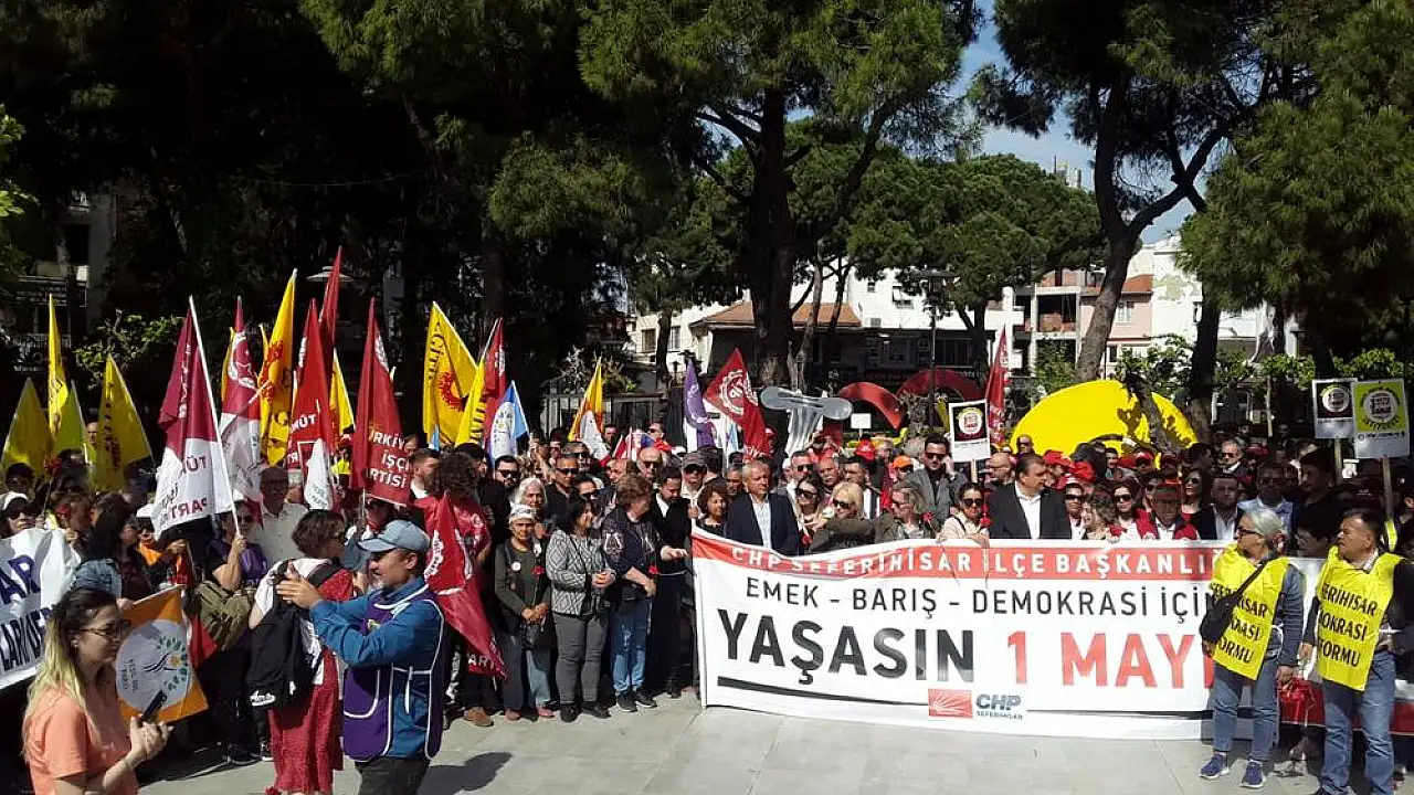 Sabahın erken saatlerinde Seferihisar’ın Pazar yerinde toplanan halk, Seferihisar Cumhuriyet Meydanı’na doğru yürüyüşe geçti. Yürüyüşün ön sırasında Seferihisar Belediye Başkanı İsmail Yetişkin, Seferihisarlı yurttaşlara eşlik etti. Sendikalar, siyasi partiler ve demokratik kitle örgütlerinin de katılım sağladığı 1 Mayıs İşçi Bayramı etkinliği, Cumhuriyet Meydanı’nda gerçekleşti. DİSK Genel İş, Tüm Emekçiler Sendikası, Eğitim Sen, SEHADER, Seferihisar Demokrasi Platformu, Atatürkçü Düşünce Derneği, Halk Evleri gibi örgütlerin yanı sıra TİP, CHP, Yeşil Sol, DEVA Partisi, Gelecek Partisi gibi siyasi partiler de yürüyüşe katıldı.
