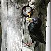 Ötücü kuşlar familyasından olan sığırcık kuşu, daha önce Ağaçkakan kuşunun ağaç gövdesini oyarak yaptığı yuvasına yerleşti.Sığırcığın yuvada 2...